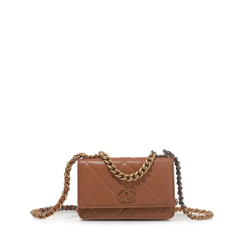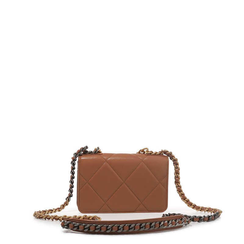 Chanel Brown Lambskin Quilted 19 Wallet on Chain WOC Gold Ruthenium Hardware 2023