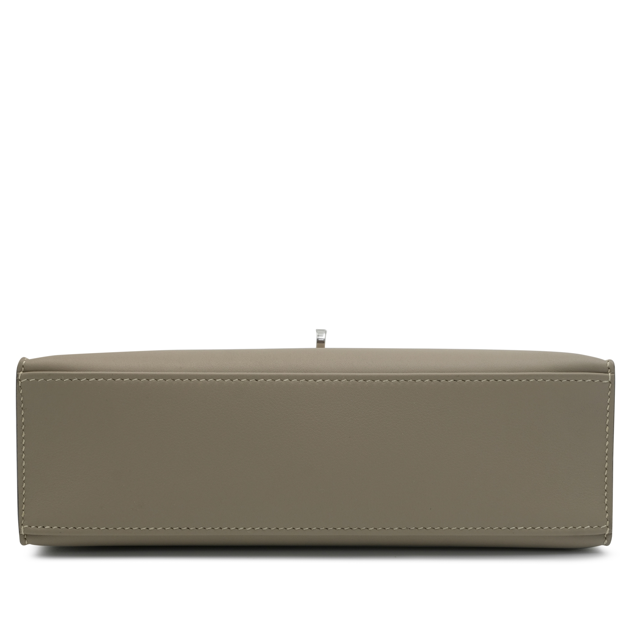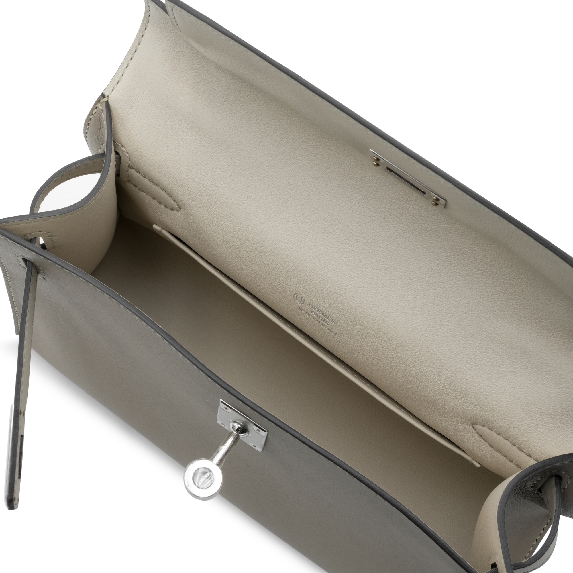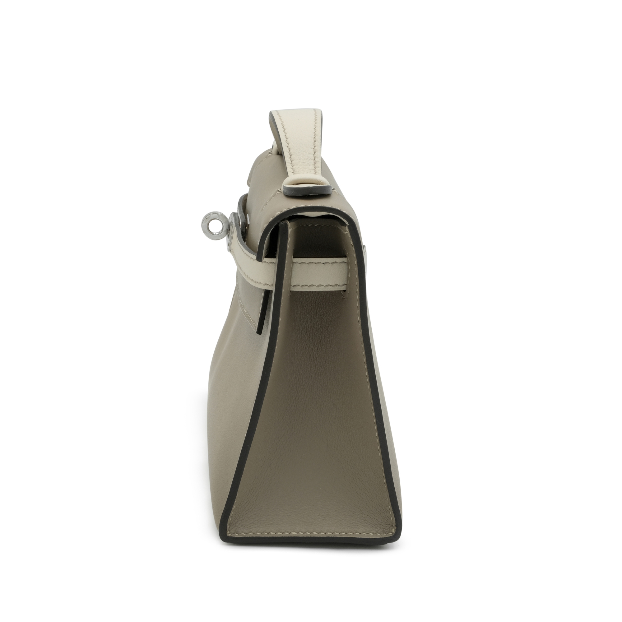 Hermès Gris Asphalt and Beton Swift HSS Kelly Pochette Palladium Hardware, 2024. The interior is lined with Beton leather. Includes dust bag and box. This item is final sale and not eligible for return