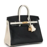Experience luxury redefined with this Hermès Special Order (HSS) Birkin 25 in an exclusive bi-color design—Black and Nata—crafted from the prized Chevre Mysore leather. Highlighted by brushed gold hardware, this collector’s piece exemplifies the pinnacle of craftsmanship and rarity. Custom-ordered and ultra-limited, it reflects sophistication and exclusivity for the discerning collector.