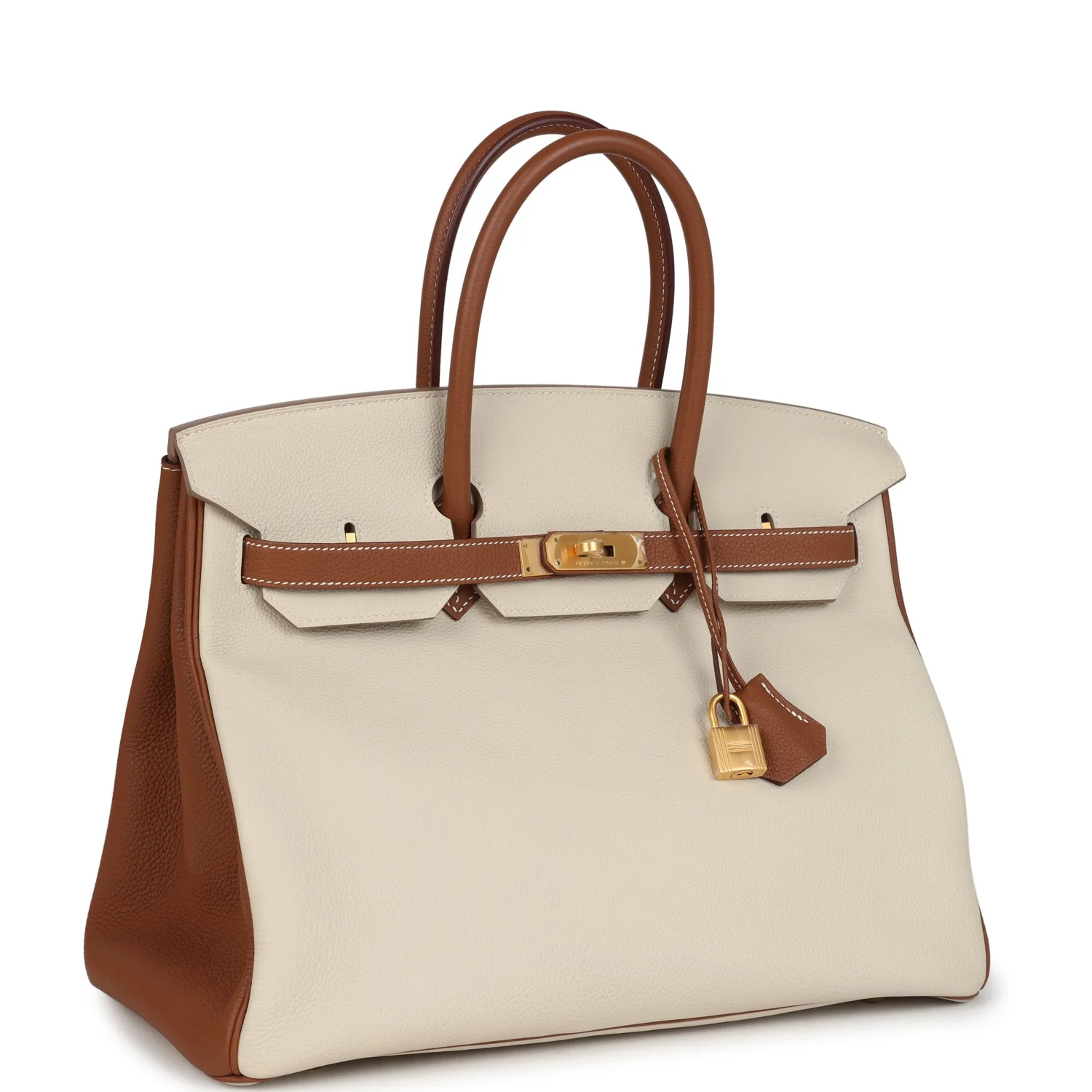 Home Hermès Handbags Horseshoe Stamp Bags Hermès HSS Birkin 35 Craie & Gold Togo with Brushed Gold Hardware
