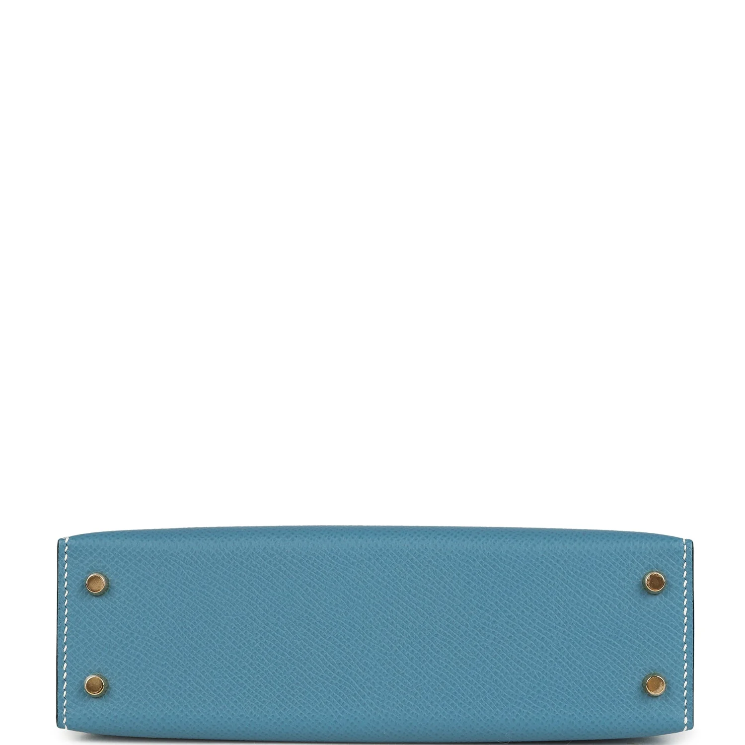 Mini Hermès Kelly Sellier 20 Blue Jean Epsom leather with gold hardware. A luxury statement piece, ideal for day-to-evening transitions. Iconic and highly collectible