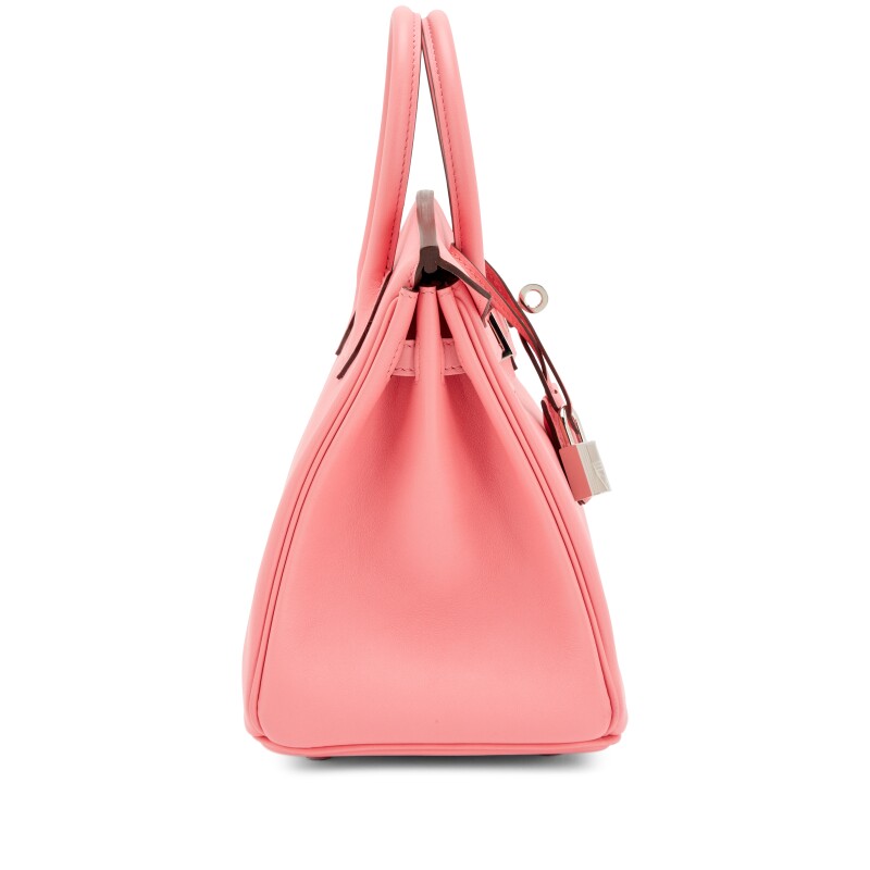 Hermès Rose Azalee Swift Birkin 25 Palladium Hardware, 2020. The interior is lined in a tonal swift leather. Includes lock, two keys, clochette, clochette dust bag, care booklet, dust bag, and box. This item is final sale and not eligible for return