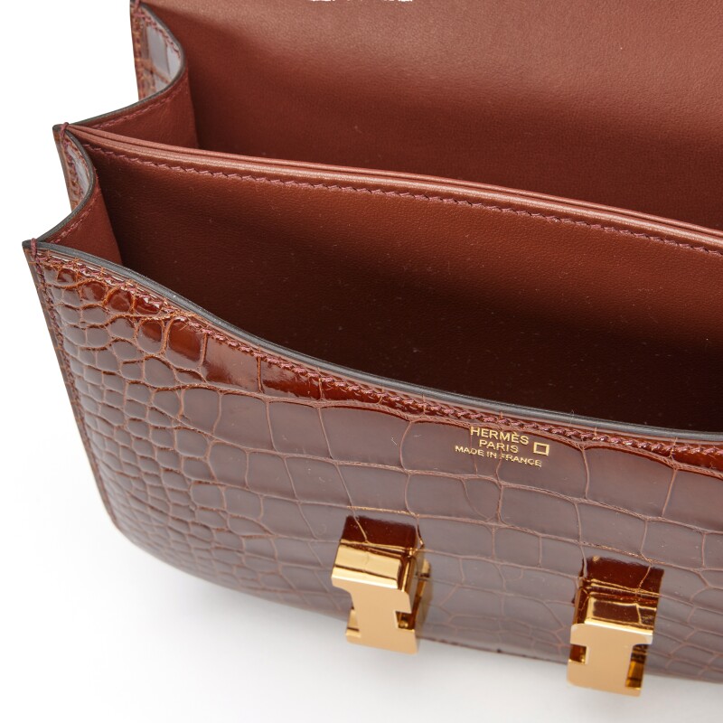 Buy Hermès Miel Shiny Alligator Mini Constance 18 Gold Hardware, 2022