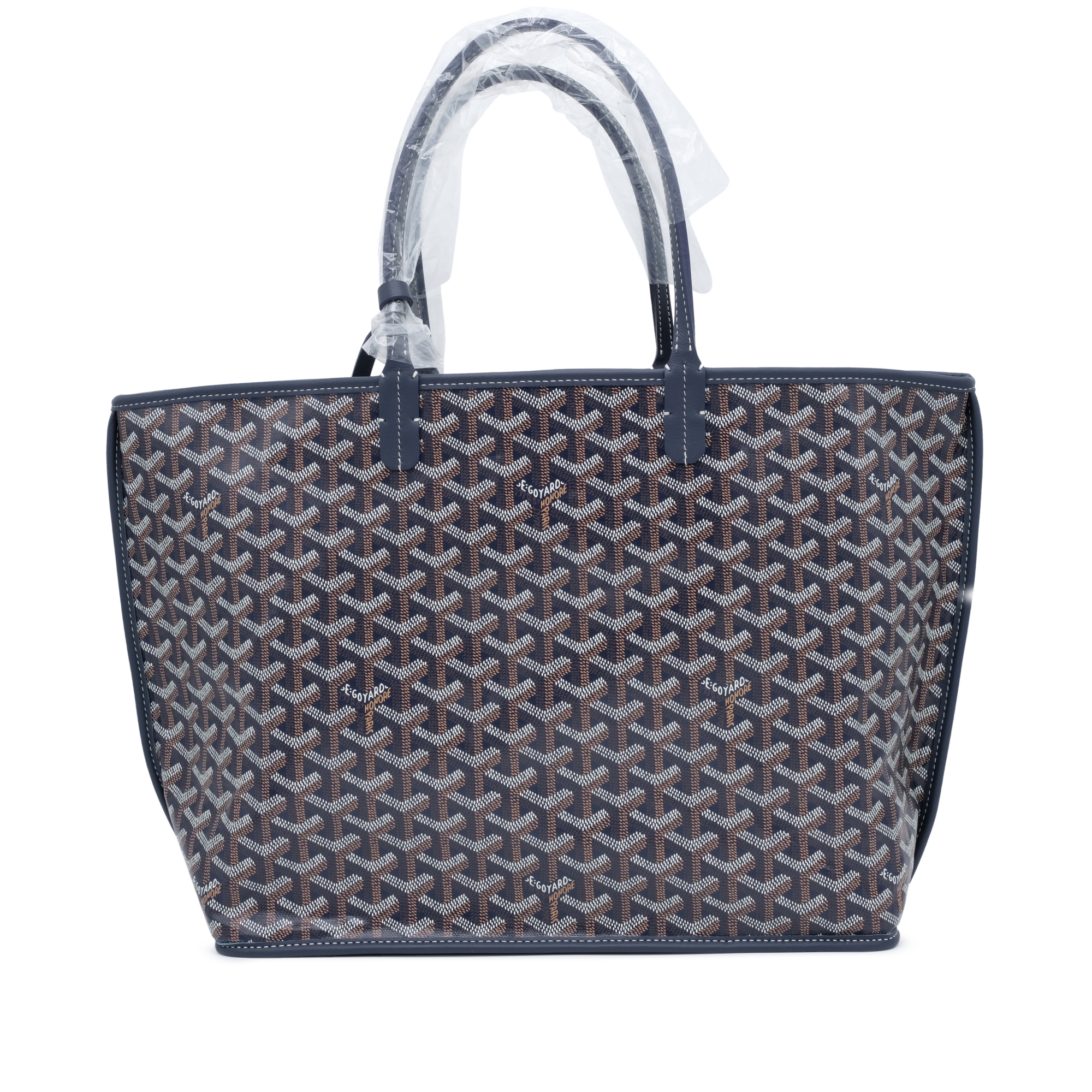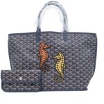 Home Goyard Bags Navy Goyardine Canvas and Chevroches Calfskin Seahorse Embroidery Anjou PM Tote, 2024