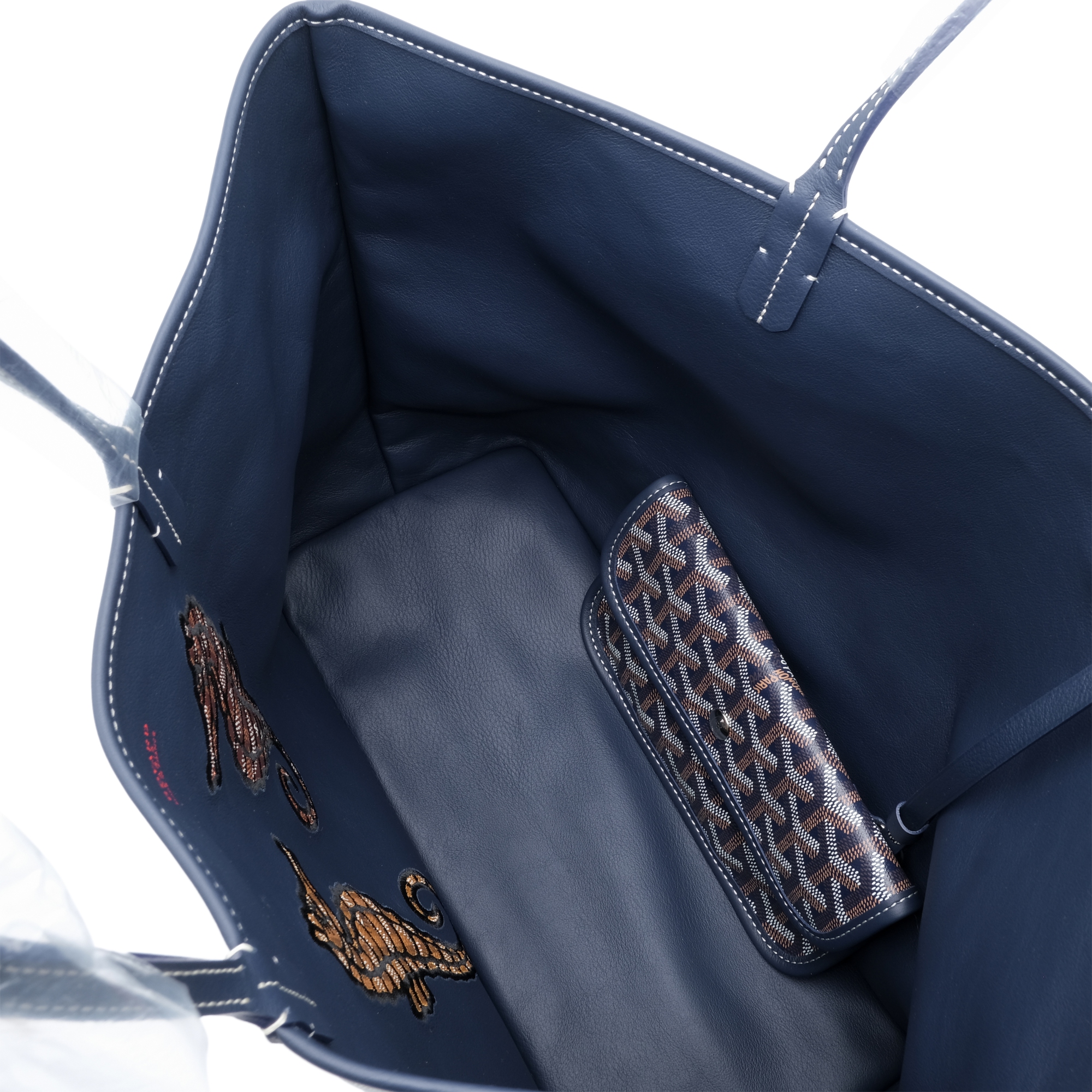 Navy Goyardine Canvas and Chevroches Calfskin Seahorse Embroidery Anjou PM Tote, 2024