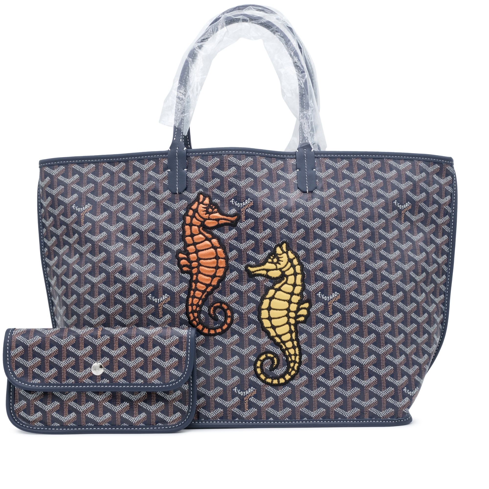 Buy Navy Goyardine Canvas and Chevroches Calfskin Seahorse Embroidery Anjou PM Tote, 2024
