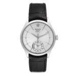 Pre-owned Rolex Cellini Dual Time Ref. 50529 in white gold, 39mm case with automatic movement and silver dial. Includes box. Strap shows light wear. Movement running but untested for accuracy or power reserve.