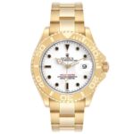 Presenting the Rolex Yacht-Master Ref. 16628, a luxurious 40mm yellow gold automatic men’s wristwatch with date complication. Launched in 1992 as the upscale counterpart to the Submariner, this model features a screw-down case back, white dial, and matching yellow gold Oyster bracelet with deployant clasp. This iconic timepiece includes its original Rolex box and papers and remains in very good vintage condition with minor wear consistent with age. A true collector’s piece and a bold statement of nautical-inspired elegance.