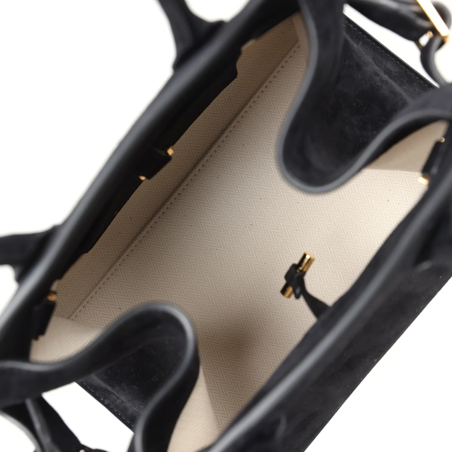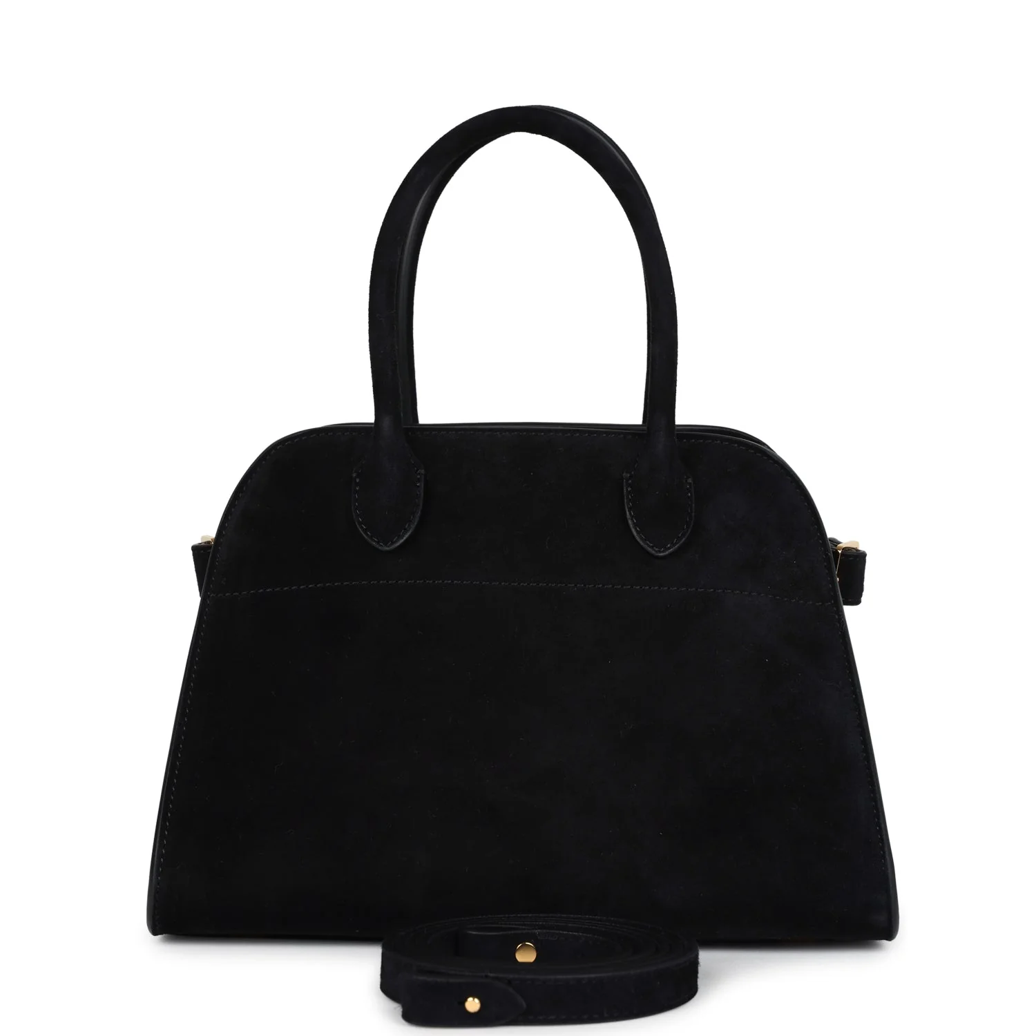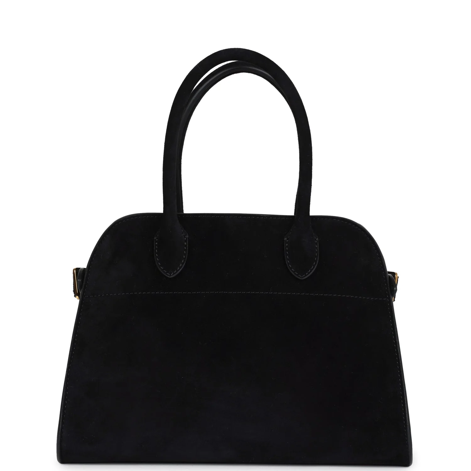 The Row Margaux 10 Black Suede Bag with Gold Hardware