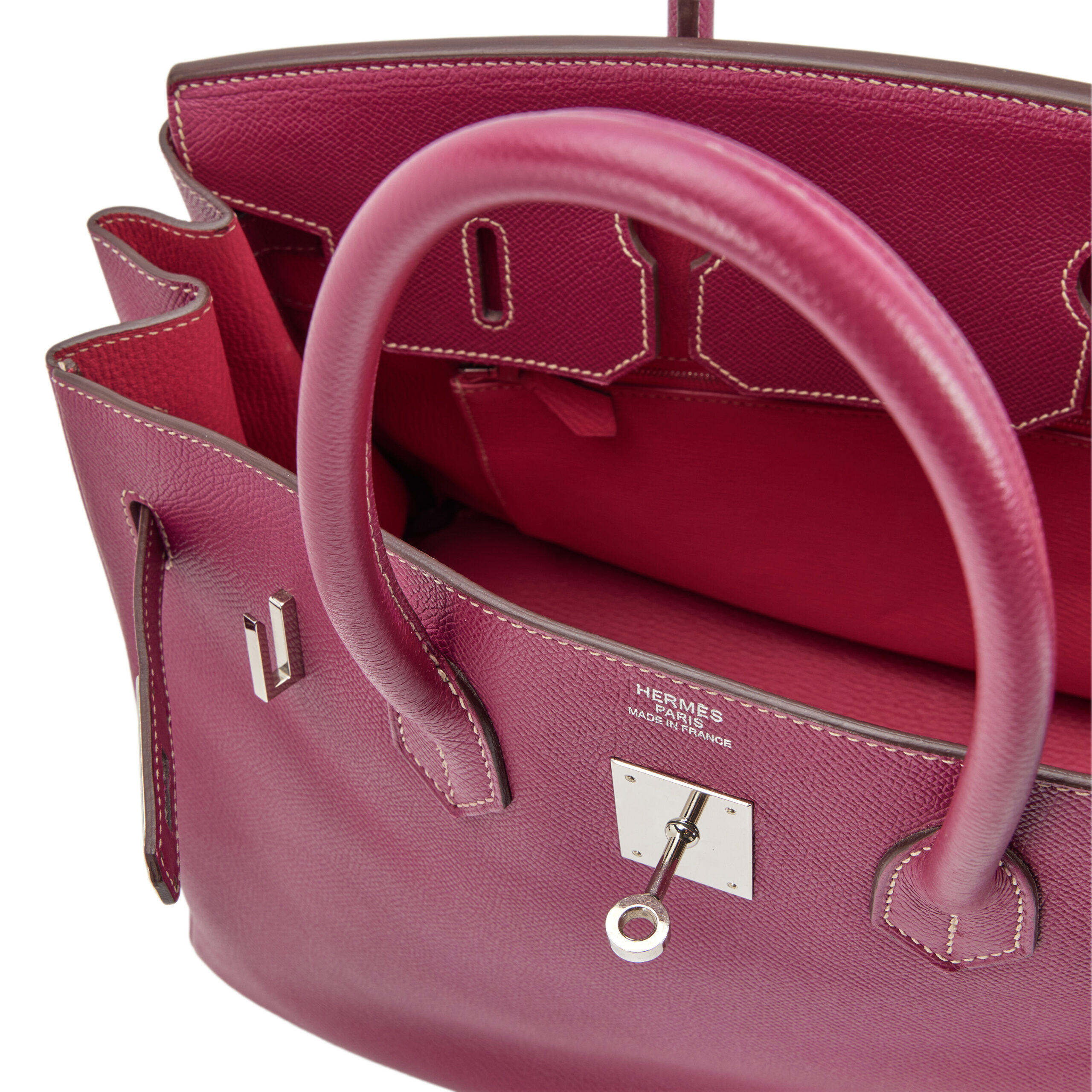 Hermès Tosca and Rose Tyrien Candy Epsom Birkin 35 Palladium Hardware, 2012The interior is lined in a Rose Tyrien chèvre leatherIncludes lock, two keys, clochette, clochette dust bag, and dust bagThis item is final sale and not eligible for return