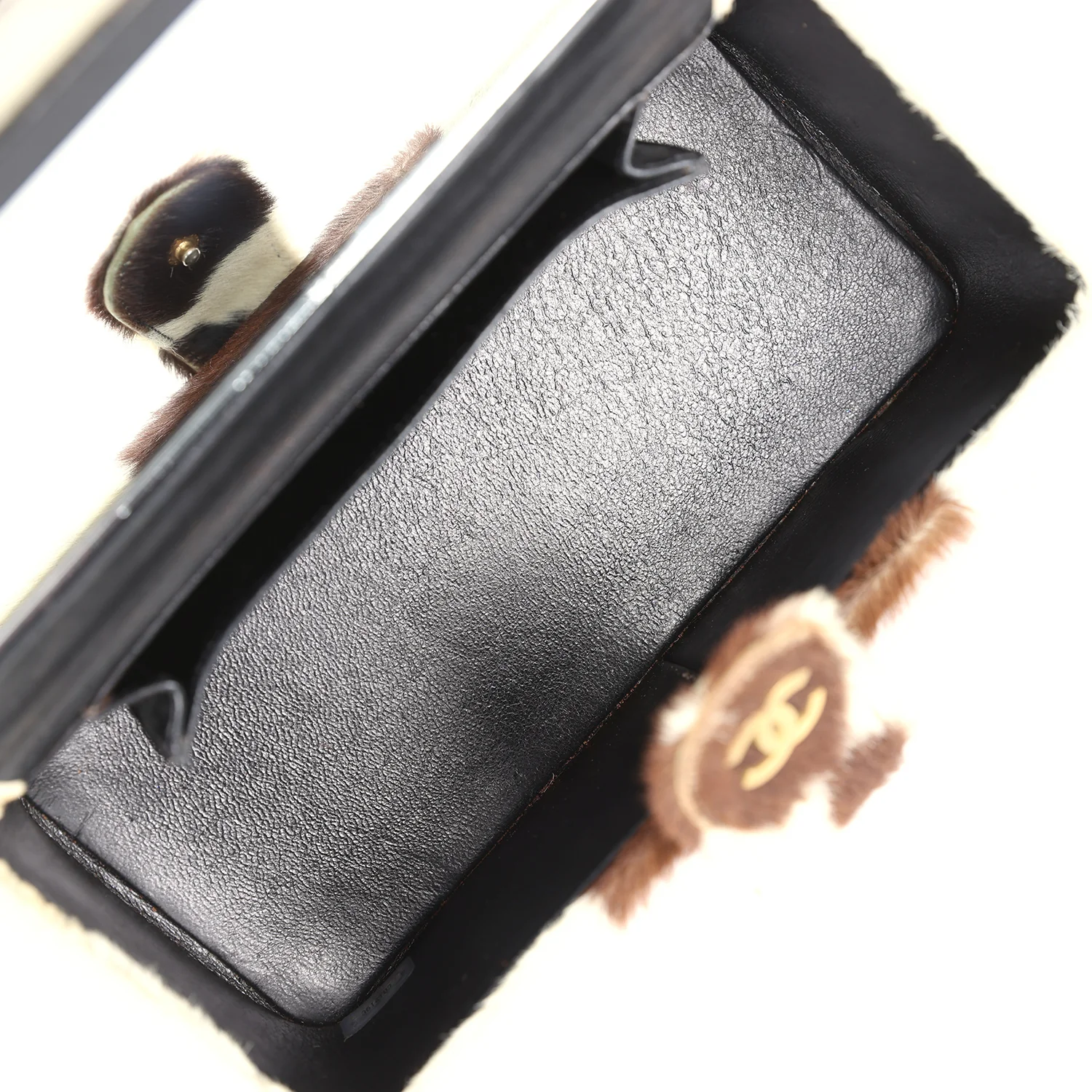 Vintage Chanel Black Pony Hair Vanity Box with Gold Hardware
