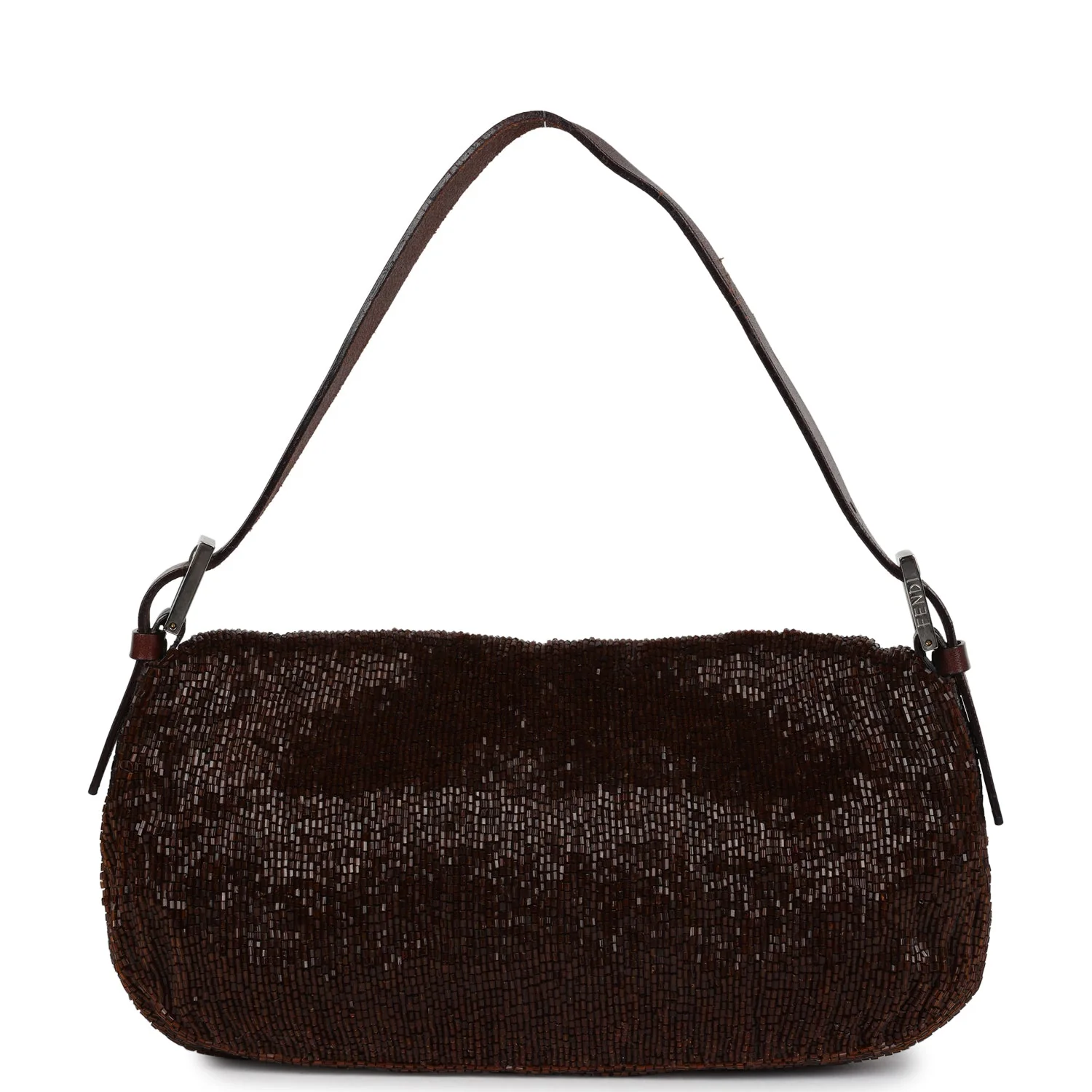 Vintage Fendi Beaded Baguette Bag – Brown Satin, Silver Hardware